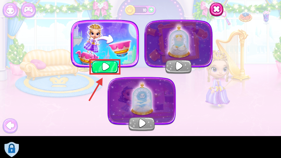 1、点击绿色播放按钮,进入公主互动关卡,开启游戏挑战。