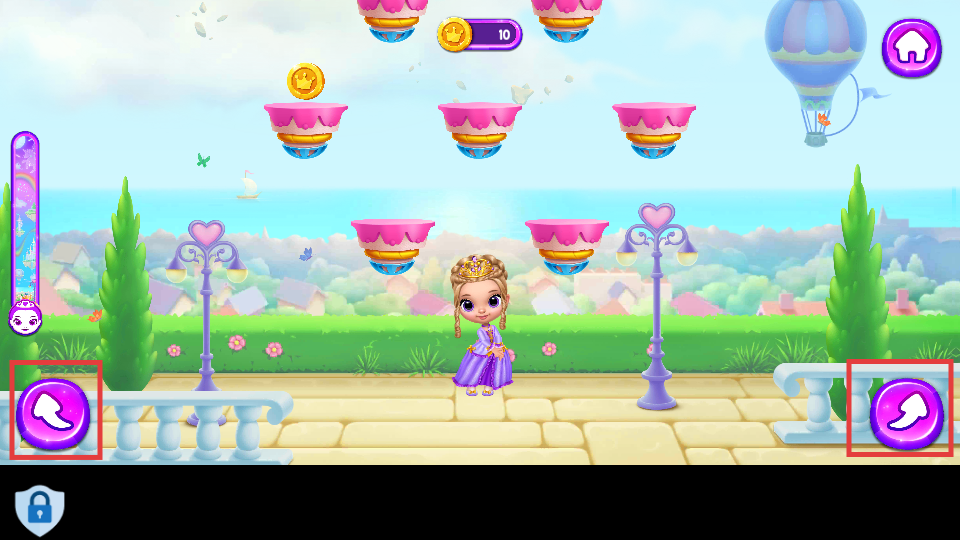 2、利用左右箭头按钮,操控公主移动,规划路径收集空中金币。