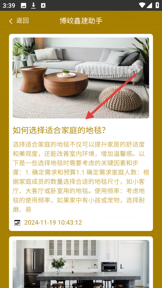 3、点击【如何选择适合家庭的地毯?】的内容卡片,查看详细的选地毯攻略。