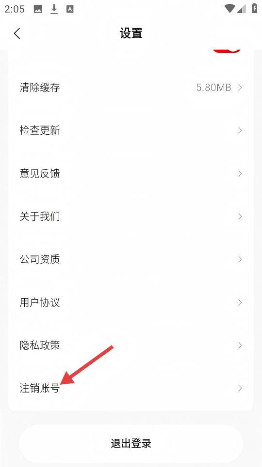 3、在设置页面,点击【注销账号】,触发注销账号的提示框。
