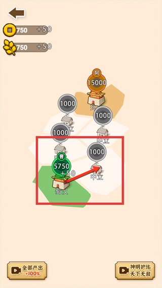 3、出现方框内箭头指标时,松开手即可发动士兵进行占领此区域。