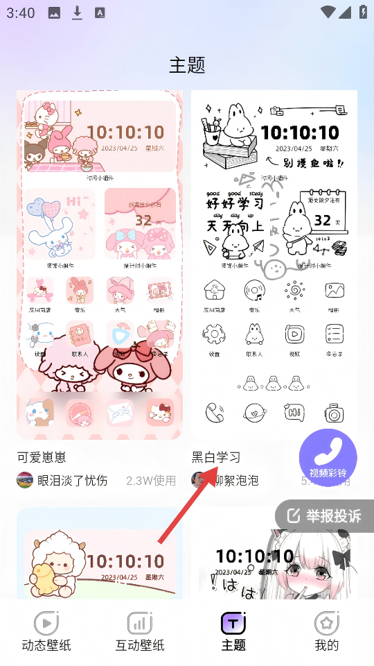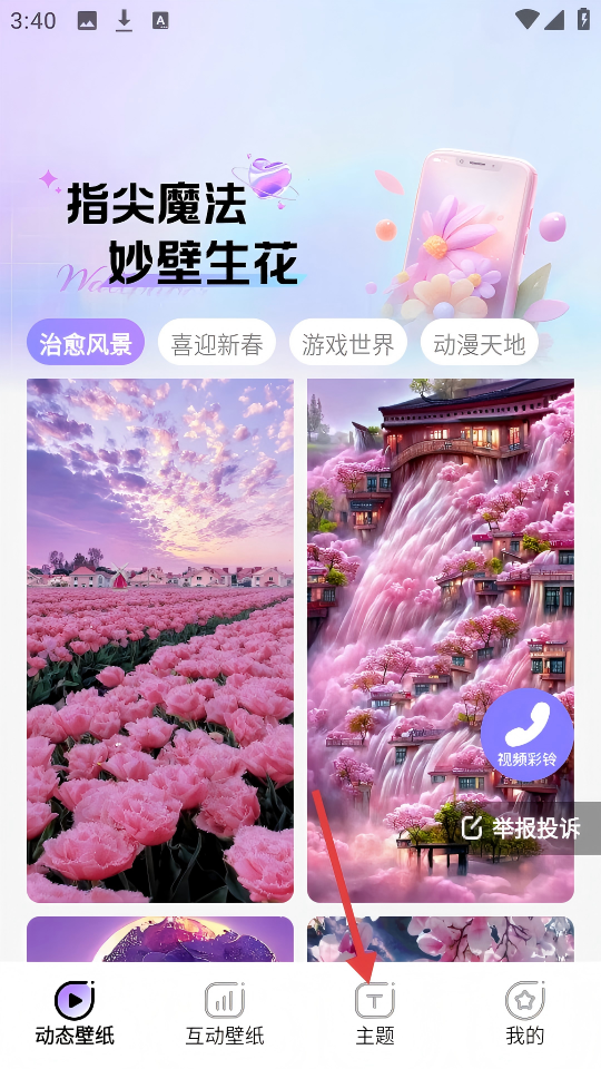 1、进入软件,点击底部【主题】选项中挑选喜爱的壁纸使用。