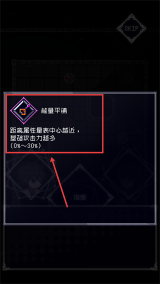 4、选择【能量平铺】技能后,尽量让属性量表保持在中心附近,可获得0%到30%的基础攻击力提升。
