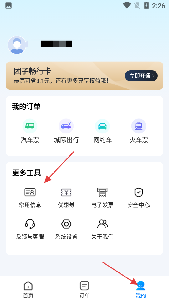 1、进入个人中心页面,在“更多工具”板块点击【常用信息】。