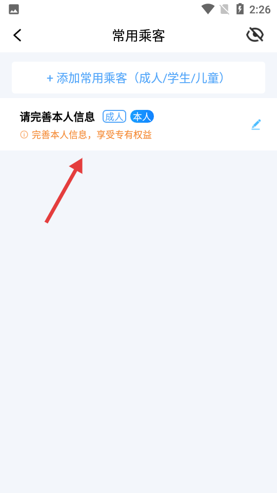 3、点击【请完善本人信息】,进入添加常用乘客界面。