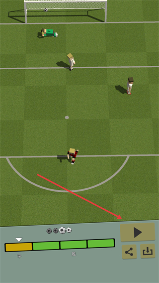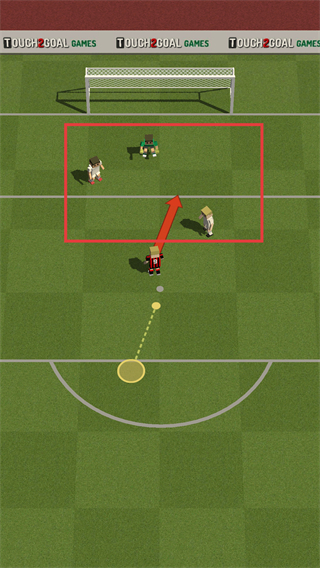 3、比赛中按红色箭头指引,控制球员向足球移动,同时避开对方防守球员,靠近球后可执行传球或射门操作,推进进攻。