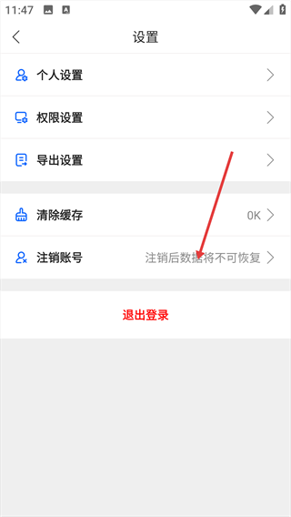3、在设置页面中,选择【注销账号】选项,跳转至注销说明页面。