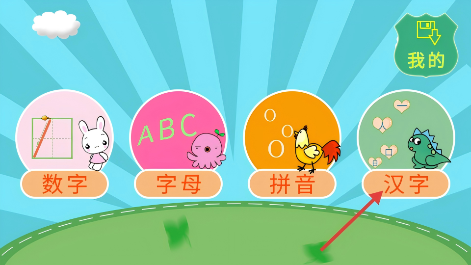 1、进入软件点击【汉字】选项,进入汉字学习页面。
