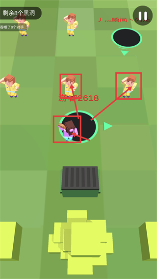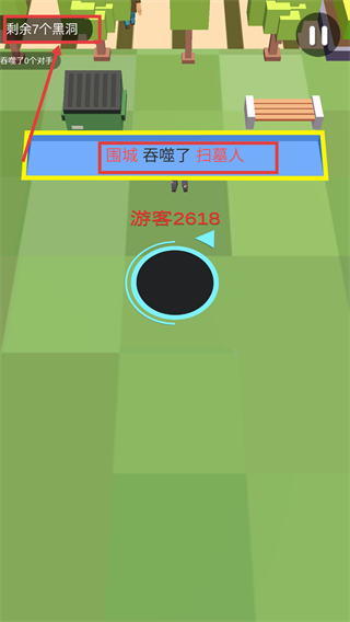 2、操控黑洞优先吞噬人物和小型物体,逐步扩大自身规模,同时留意其他黑洞的动向。