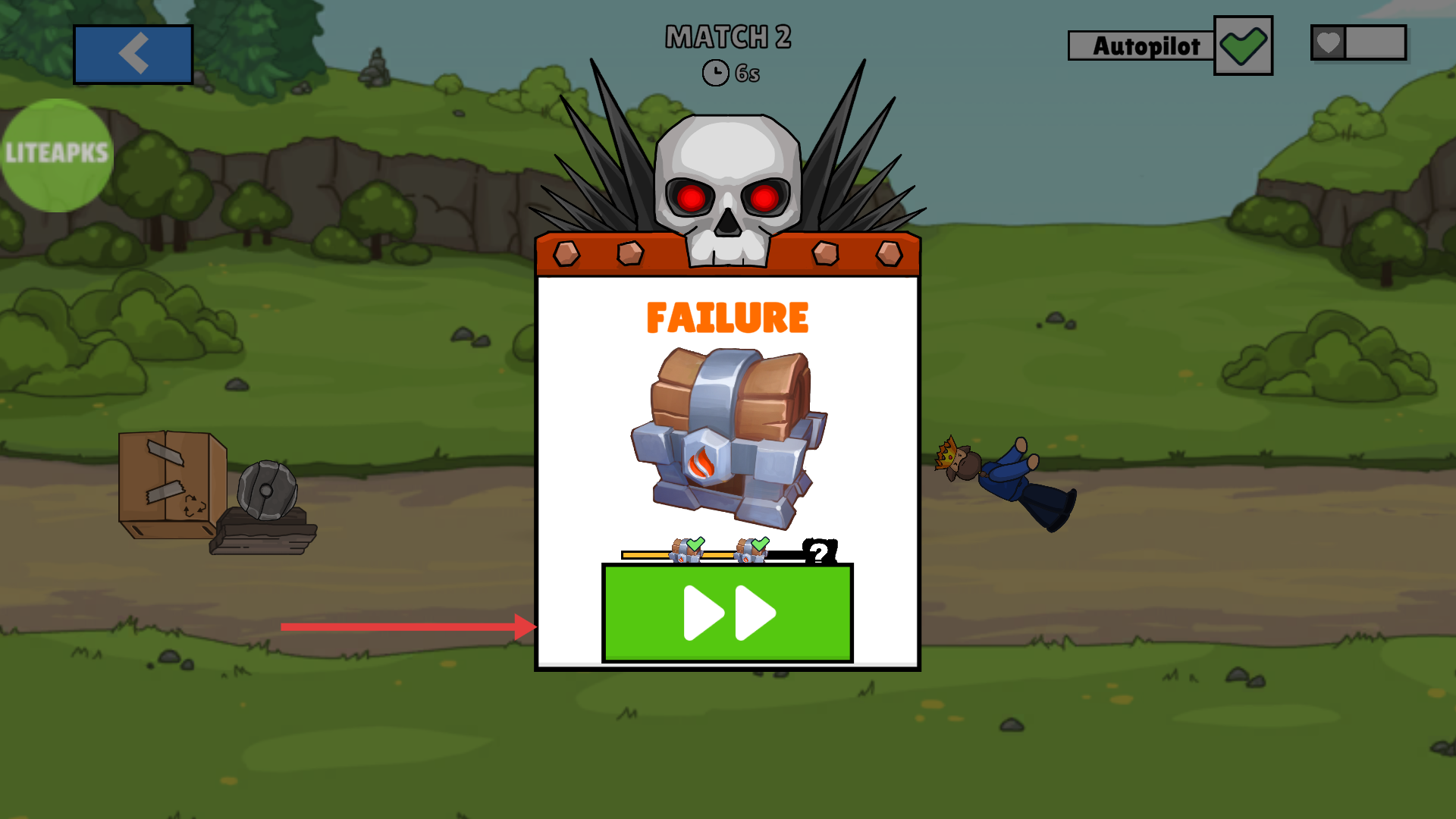 4、若战斗失败,点击绿色按钮重新开始,总结经验,优化战车结构和武器配置,再次挑战。