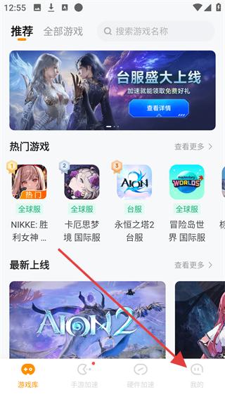 1、打开雷神加速器首页,点击底部【我的】进入个人页面。