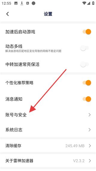 3、在设置页选择【账号与安全】选项,进入账号管理页面。