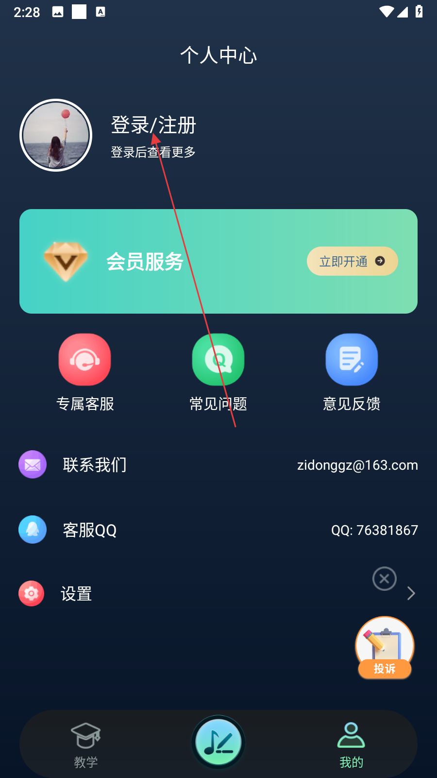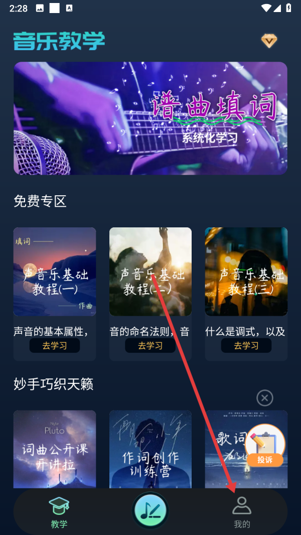 1、在音乐教学页面,点击右下角【我的】选项,进入个人中心页面。
