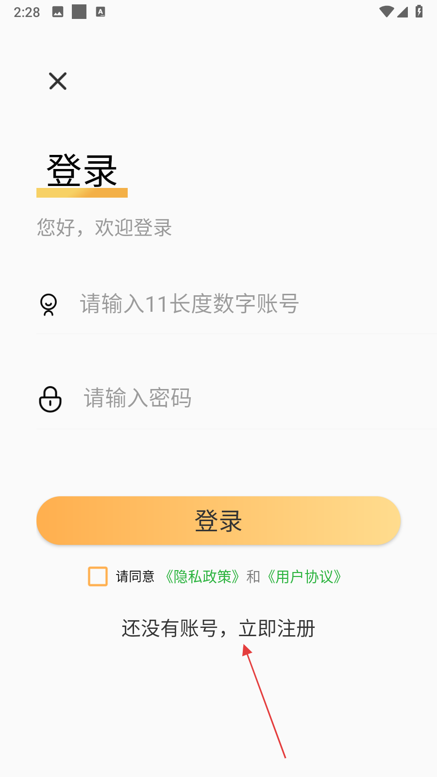 3、在登录页面,点击【立即注册】选项,进入注册页面。