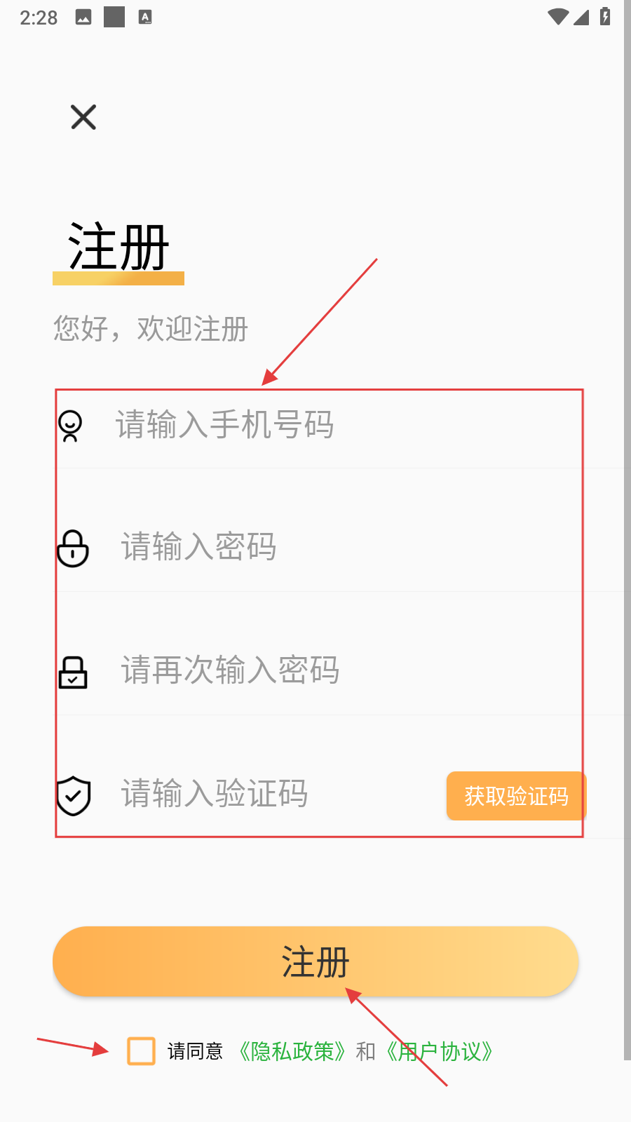 4、依次输入【信息】,勾选【同意协议】后,点击【注册】按钮即可完成账号注册。