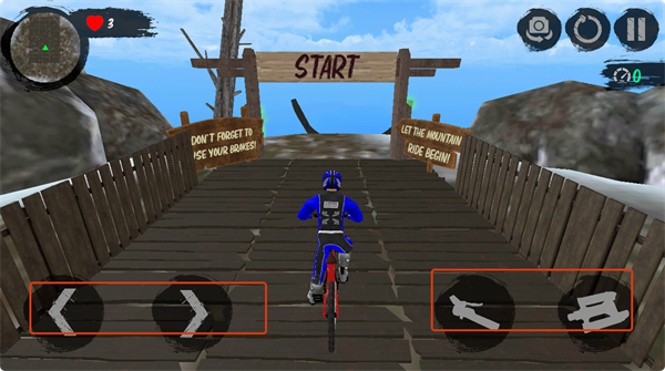 2、骑行时,使用左右方向键控制方向,刹车和加速键调整速度,在“START”处开启骑行之旅。