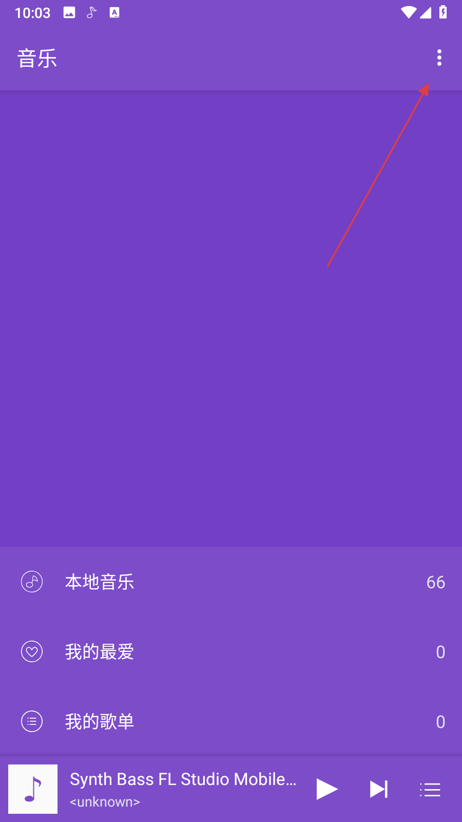 1、在音乐页面,点击【右上角三点图标】,展开功能菜单。