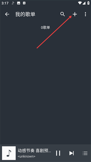 2、在“我的歌单”页面,点击右上角的“+”按钮,弹出“新建歌单”的操作弹窗。
