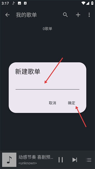 3、在“新建歌单”弹窗中,输入歌单名称,确认内容后点击“确定”按钮。