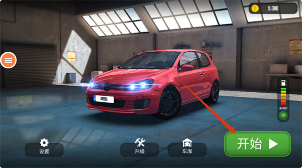 1、游戏开始时,点击【开始】按钮,驾驶红色汽车进入停车挑战场景,开启【关卡1】的任务。