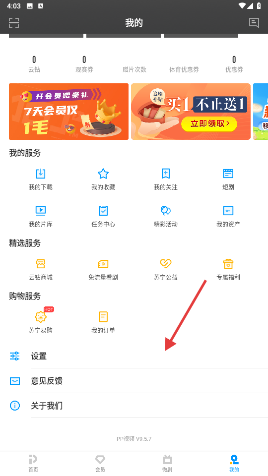 1,请您先点击客户端 “我的”,并将菜单拖动到最下方,找到“意见反馈”。