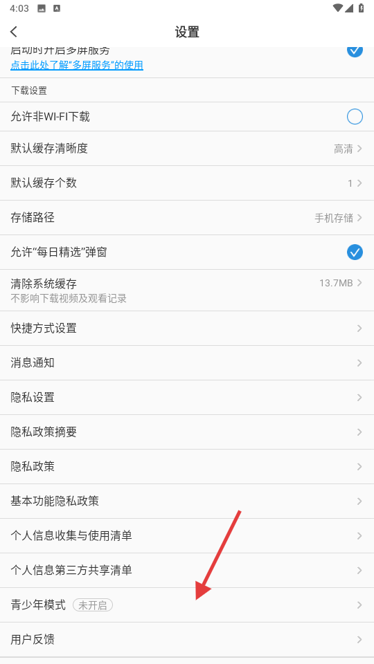 3、找到并点击【青少年模式】选项。