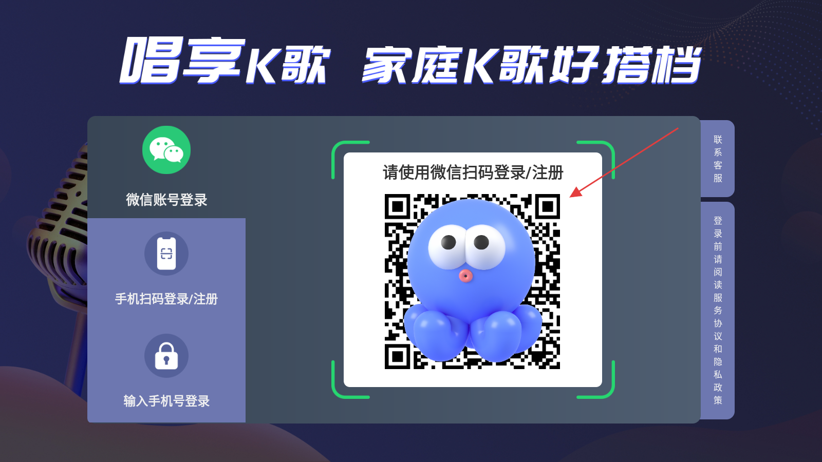 4、在登录页面,使用【微信扫码对应二维码】,登录后即可畅享K歌功能。