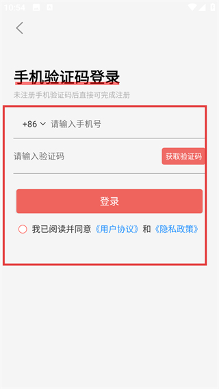 4、输入手机号并获取验证码,勾选协议后点击【登录】(未注册手机号会自动完成注册)。