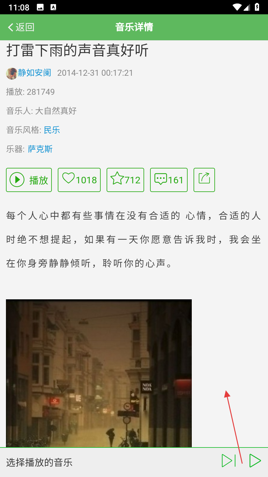 4、在音乐详情页面,即可查看【音乐的播放量、音乐人】等信息。
