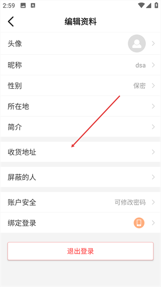 2、在编辑资料页面,找到【收货地址】选项并点击。