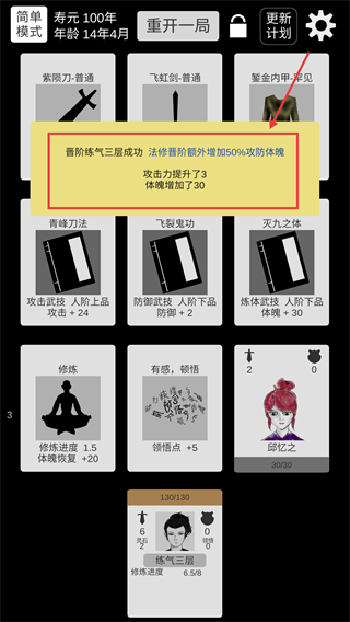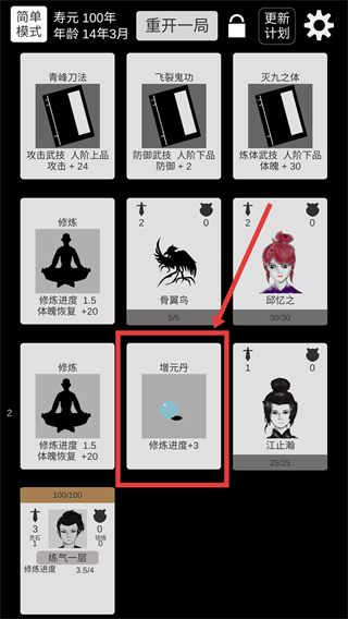 2、使用【增元丹】能快速增加修炼进度,每次提升3点进度有效缩短修炼周期推进境界。