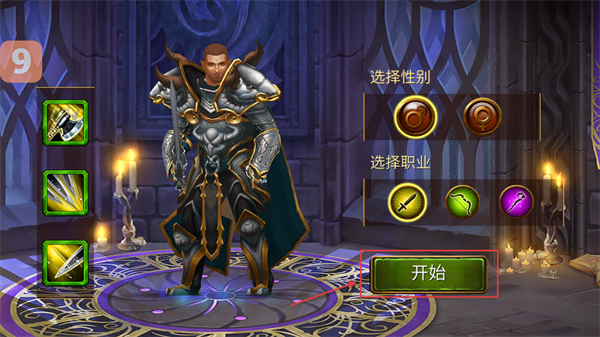 1、进入游戏后选择性别与职业,点击【开始】按钮,开启魔幻世界的冒险之旅,体验角色扮演的乐趣。