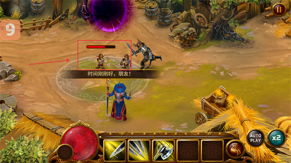 2、战斗时开启【自动战斗】或【倍速】功能,跟随指引击败敌人,快速推进新手关卡的进度。