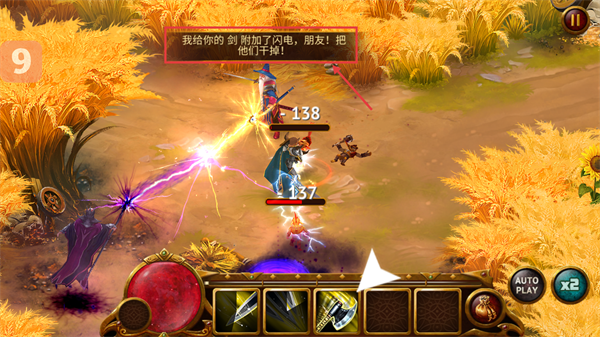 4、战斗中利用技能附加的闪电效果,提升伤害输出击败敌人,获取经验顺利通过当前关卡。