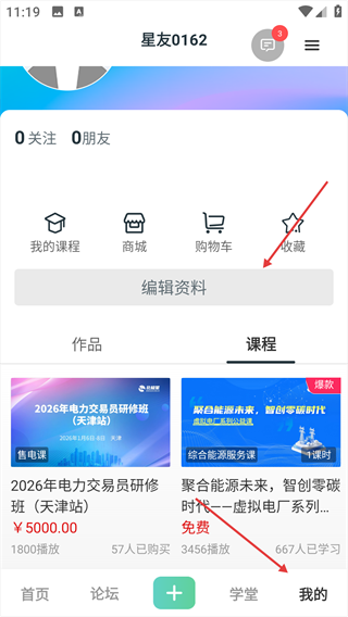 1、在【我的】页面中,点击【编辑资料】按钮。