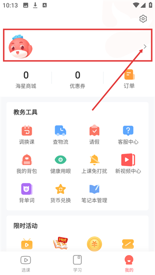 1、在课程界面底部点击【我的】按钮,进入个人中心页面。