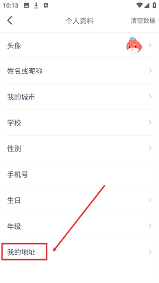3、在个人资料页面,选择【我的地址】选项,可进入收货地址管理界面。