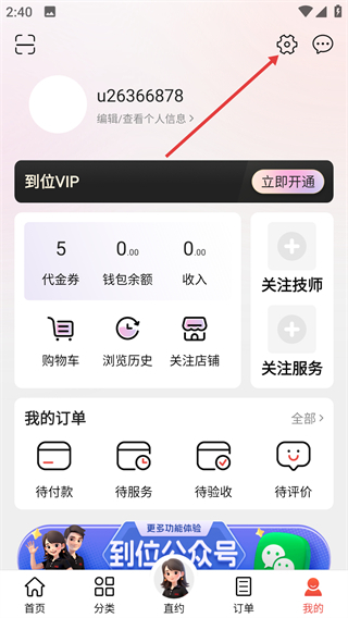 1、打开到位APP,点击底部【我的】进入个人页面,再点击右上角设置图标。