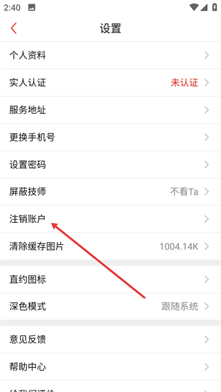 2、在设置页面找到【注销账户】选项并点击,进入注销说明页。