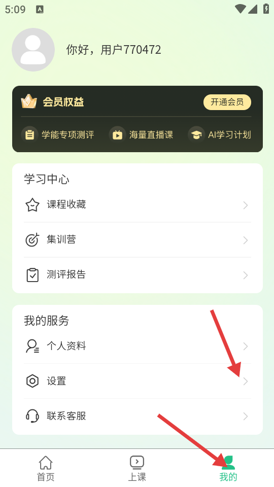1、打开app,进入【我的】页面,点击【设置】选项。