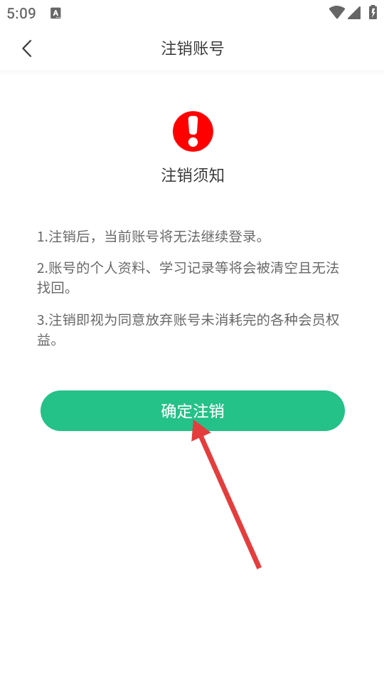 3、在注销账号页面,阅读注销须知后,点击【确定注销】按钮。