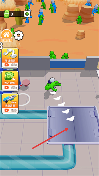 3、将猎杀到的僵尸运送到红色箭头指向的加工区域,进行果汁加工处理。