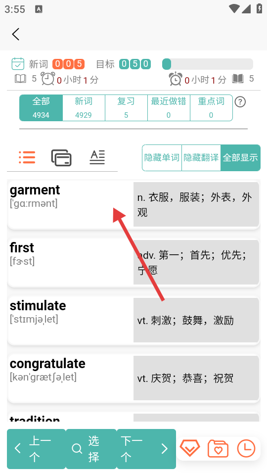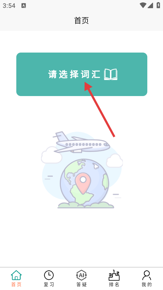 1、在首页中,点击【请选择词汇】按钮,进入词汇设置页面。
