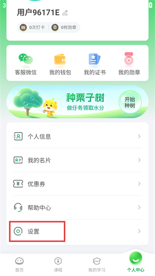 2、进入【个人中心】页面后,找到【设置】选项并点击,可进入设置界面查看更多功能选项。