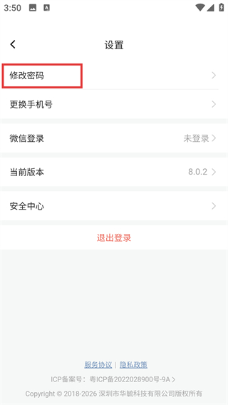 3、在【设置】页面里,找到【修改密码】选项并点击,即可进入密码修改的操作流程。