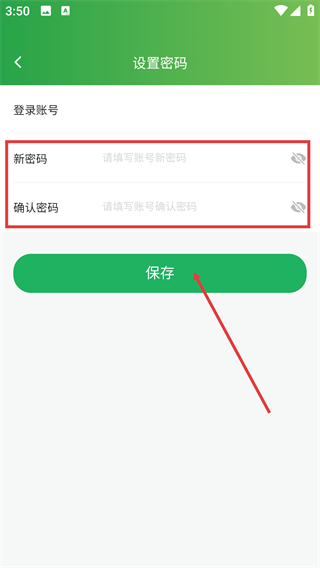 4、进入【设置密码】页面,依次填写【新密码】和【确认密码】,完成后点击【保存】按钮即可完成修改。