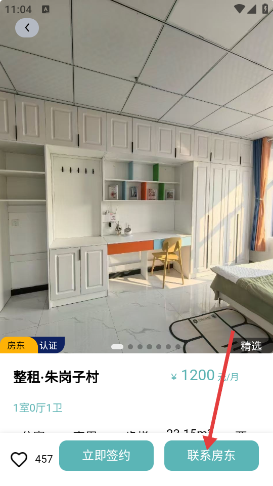 3、进入房源详情页后,点击【联系房东】,进入与房东的聊天界面。