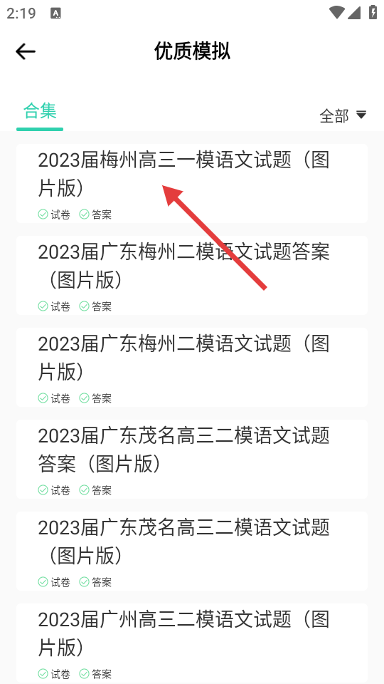 3、在优质模拟列表里,选择目标试题,点击进入试卷详情页。