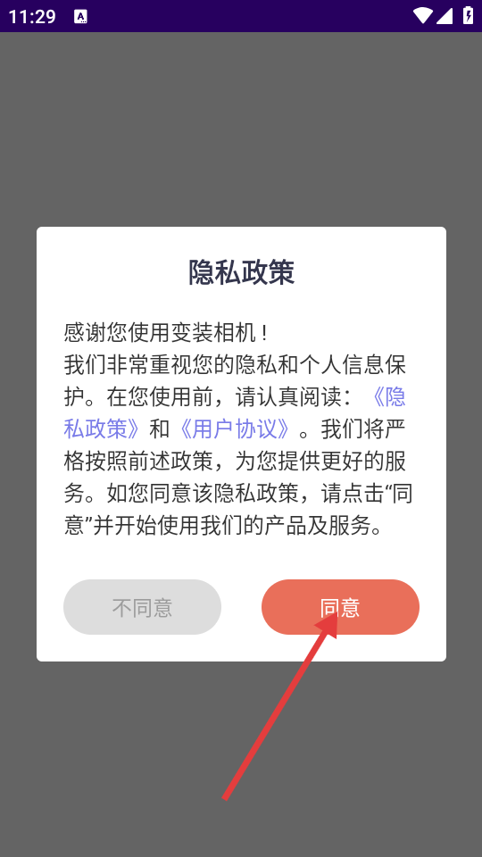 1、首次使用,在隐私政策弹窗中点击【同意】按钮,进入应用。