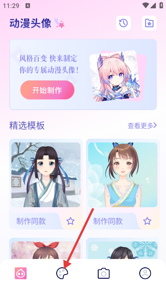 2、进入后,点击底部调色盘样式的【漫画创作】图标,切换到漫画创作页面。